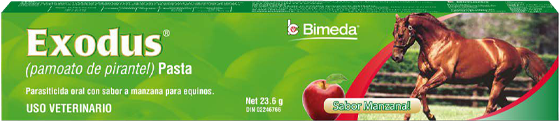 Antihelmíntico indicado para la eliminación y control de infestaciones de grandes estróngilos (Strongylus vulgaris, S. edentatus, S. equinus), pequeños estrogilos, gusanos en forma de alfiler (Oxyuris equi) y gusanos redondos grandes o ascáridos (Parascaris equorum). Jeringa de facil aplicación y alta palatabilidad por su sabor a manzana.