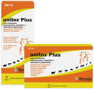 Unitox Plus está indicado para uso en baños de pulverizacion contra ectoparásitos que afecta al ganado como Boophilus microplus (adultos y jóvenes), larvas de Dermatobia hominis y Moscas de género Haematobia irritans (adultos.)